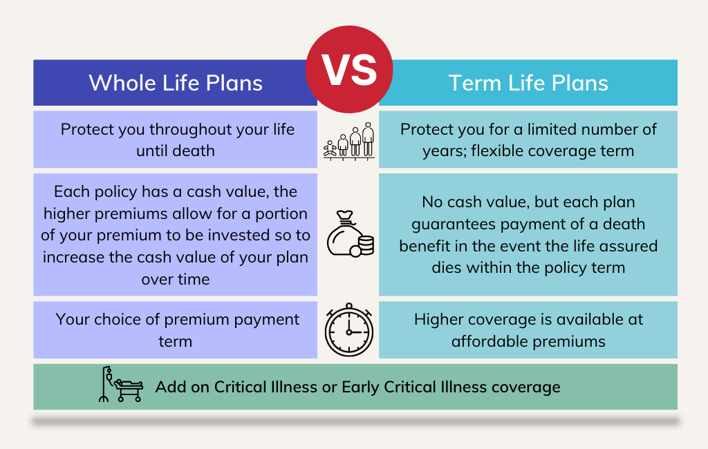 Whole Life & Term Life Plans help minimise financial burdens in different yet complementary ways. These two plans are often purchased together for better insurance coverage, cost-effectiveness, and peace of mind.